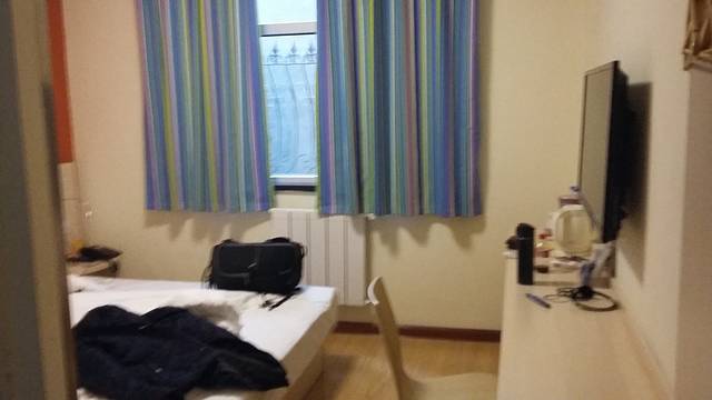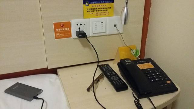 我当时冻得够呛,就想找个暖和的房间。很多商务宾馆酒店倒是有空调,好不好使就不敢保证了,不好使又没有人管更不好说了。7天连锁基本不存在这个问题,事实证明,不大的房间(一个人睡足够,还是大床)空调我一宿都持续30度到头;