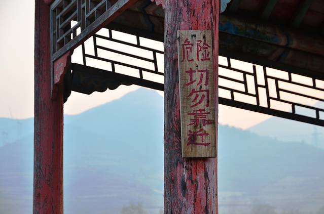 老人家带着我们跨过干涸的河道到对面的景区,打开大门后,把锁头挂在上面嘱咐:出来的时候一定把门锁上啊,然后就走了。