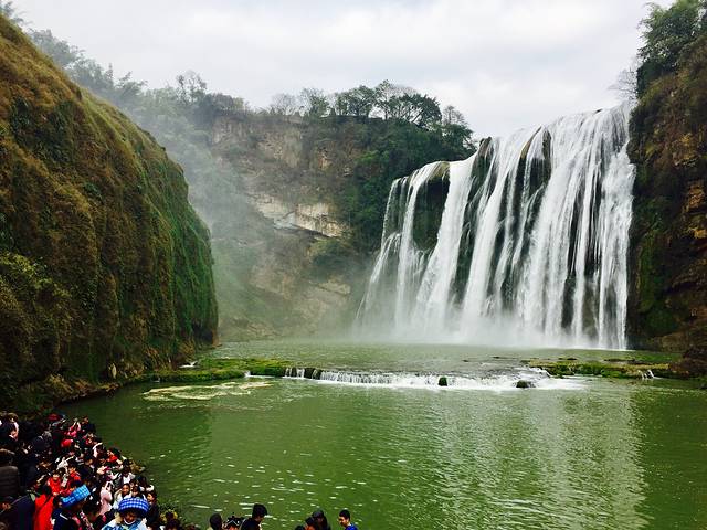 看了下地图,发现这个著名景点距离就200公里左右,全家果断决定去看看,美景是好,只是春节人也多,门票160,学生证半价,因为鸡年属鸡的免费进入,可我家刚好没鸡≥﹏≤,停车费每车20。停车场里有低价卖雨衣的老太,雨衣是挺划算的,可进去才看到人挤人令人窒息的场面根本没勇气走到瀑布底下去,也就看了大瀑布坐大扶梯(每人30元)出去了