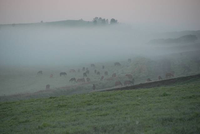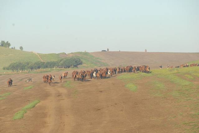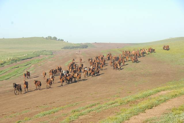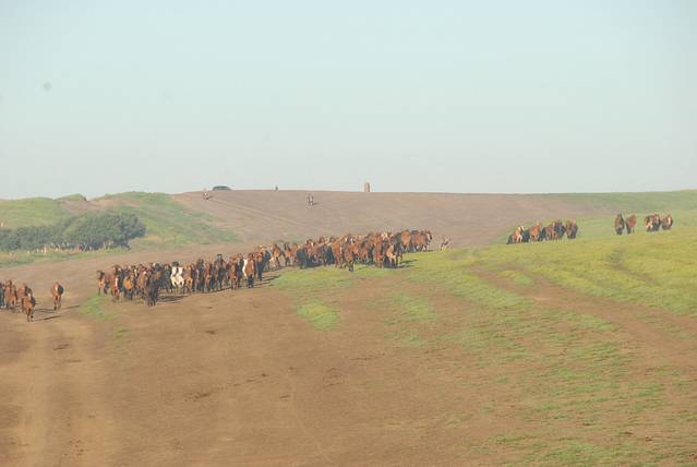 如果他们让游客参观的是早上从马圈放马出去觅食的时候,那应该会壮观一点。现在看的都是马群往马圈里赶。