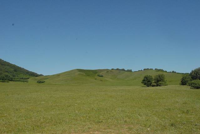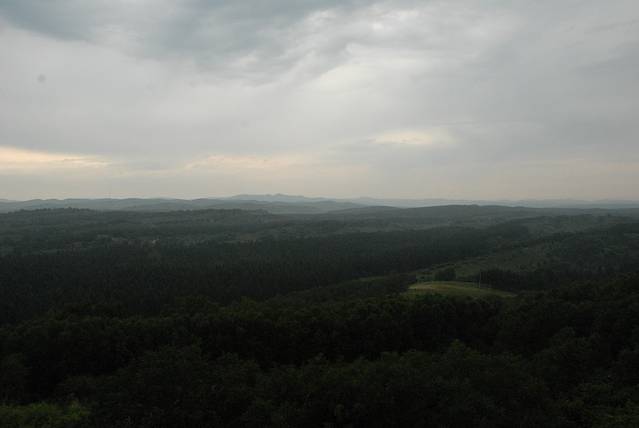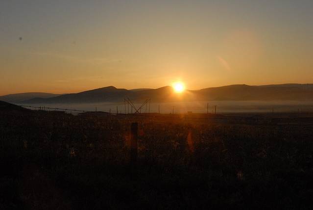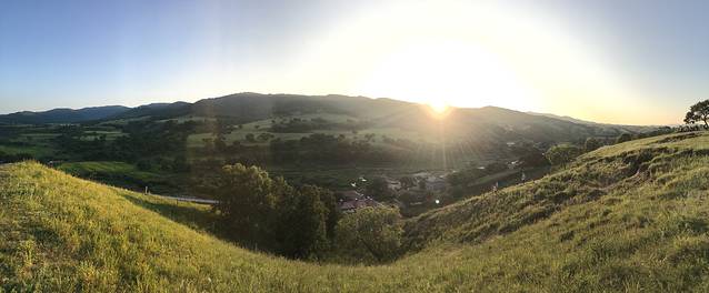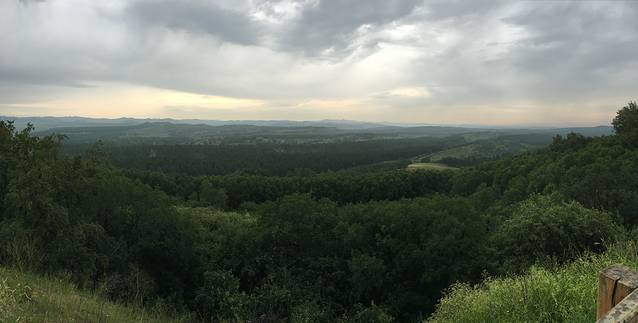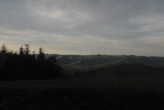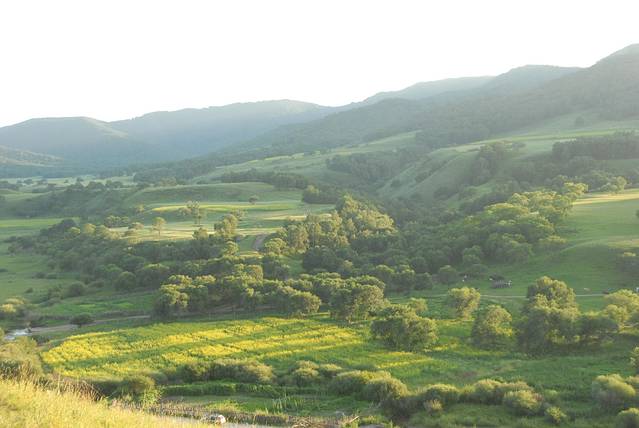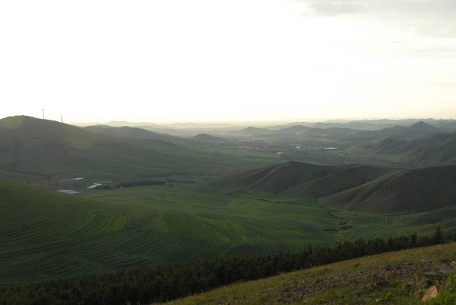 顶上的日落确实很美,还可以俯瞰御道口牧场,夕阳西下后看着牧场的灯火,突然就感受到了草原牧民的情怀。而远处连绵的山坡草甸形成的旷野甚至让我身处草原却有种“大漠孤烟直,长河落日圆”的错觉。