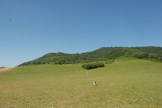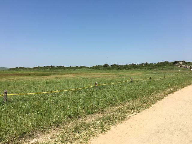 龟山这里原本是有铁丝网拦着,但是已经被压倒,虽然有车辙,我们还是没有开车上去。之前看日落的时候强行开车上山还是有些心理阴影的,龟山的车辙是单行,也不好掉头错车之类的,强行压草地也不知道会不会有人突然蹦出来开罚单,就没冒这个险。