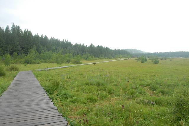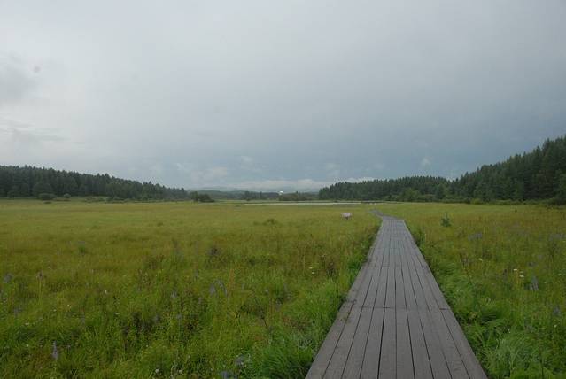 开始是阴天,在金莲映日那里休息了会突然放晴。景点里木质栈道穿插在花丛沼泽中,是的沼泽,景点里到处都是警示牌提醒游客下面是沼泽,但是也确实有人下去并且看起来并没有什么事。可以从栈道上看到这个景点里的漂流,与其说是漂流我觉得这更像是让我们荡起双桨。