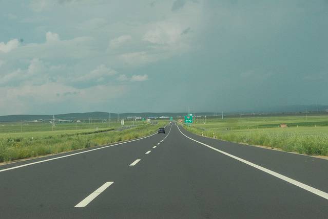 进入内蒙后的告诉,两个方向的车道被草坪隔开。