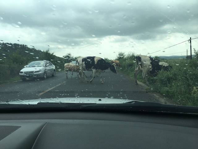 下去的过程真的很艰辛,顶上有许多的石头,双驱后轮使不上劲,全家上阵用工兵铲把一个石头给铲出来才成功把车挪下去。工兵铲都豁了一个口..囧。我们在开进红X谷景区的时候遇到了一位独自开着Jeep的叔叔,四驱越野蹭蹭的就下去了,等我们一家开车下去的时候发现他就在前方等着,看我们家车从山上下来冒出头了他才离开,好暖~啰嗦这么多就想表明,小轿车不适合爬这个坡啊,尤其是比我们家车还宽的小轿车,我们家铲子的血泪史就摆在这里。这里的农家乐蛮多都有自己的四驱越野车,其实可以拜托他们带你去这里看日落。要安全的多。