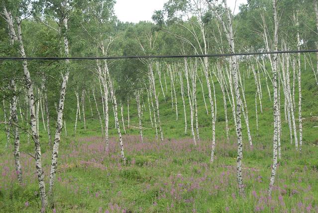 白桦柳兰没有指示牌子,或者有可能是我没看见牌子,就在尚海纪念林的斜对面,当时是看好多车停在路边下来拍照我们才发现的。一个山坡都是白桦树和柳兰。