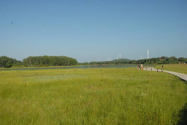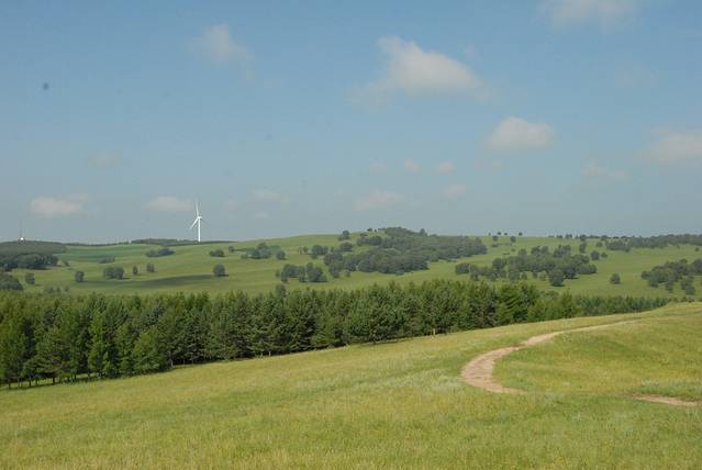 旅馆招待我们的叔叔推荐了一个叫红X谷(原谅我名字写成这样,因为真的中间那个字已经看不清了,旅馆的叔叔都不知道具体是什么字)的地方看日出。因为是中午赶到的御道口,时间充裕,下午先去逛了罗圈,月亮湖,风电及白桦林这一圈,月亮湖那里要原路返回,不然就是上棋塞线了。