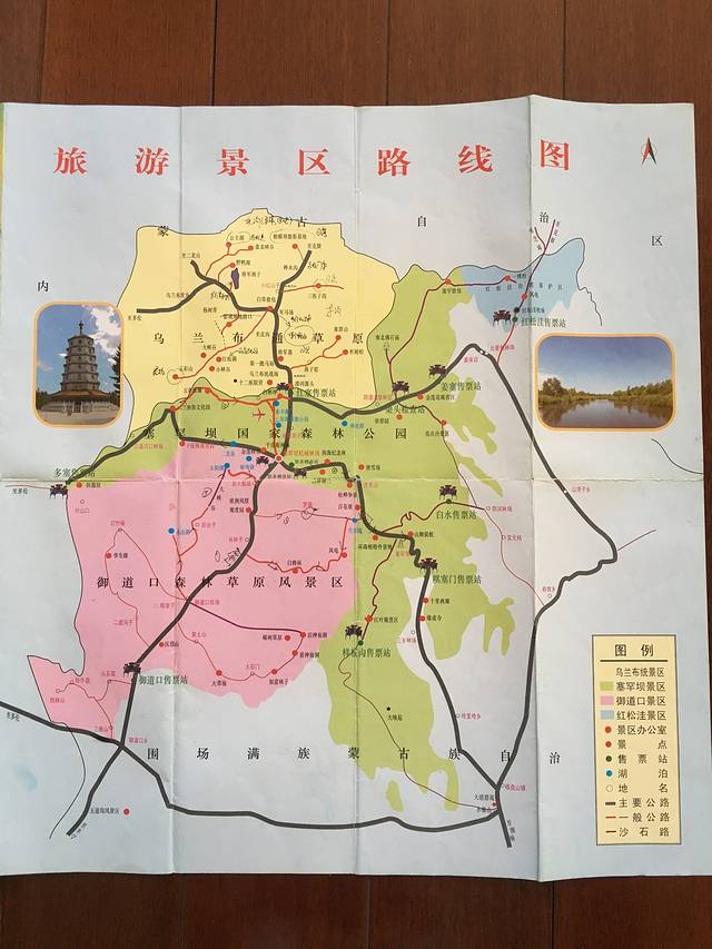 乌兰布统门票可以使用2天,景区相对比较集中,景区比木兰围场小一些。旅馆和饭店基本都有一张比售票处卖的地图要专业的地图。地图如下。