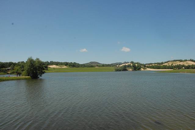 个人觉得太阳湖和月亮湖比不算大的,其实挺多湖我觉得都太小了…就是大一些的水泡子。在湖边有一个可以登上高台的地方,但是高台上视野并不好,跟前的树太高,异常抢镜,根本看不见一个完整的湖。