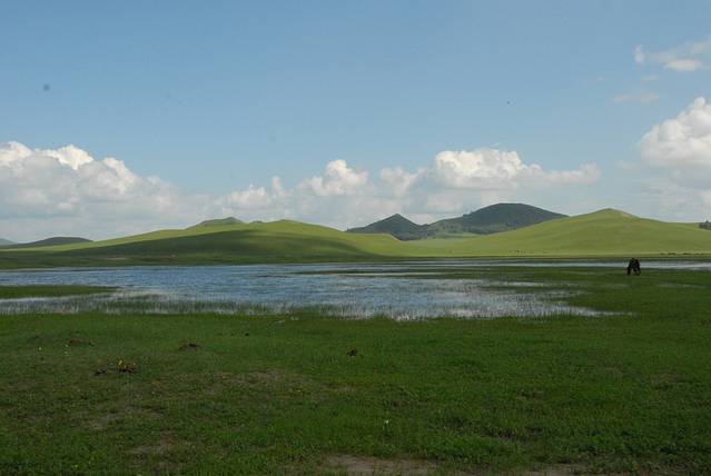 野鸭湖,远方高处的石头堆是当年拍狼图腾的地方。
