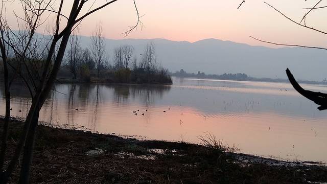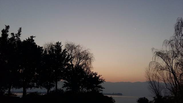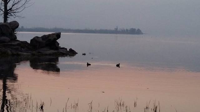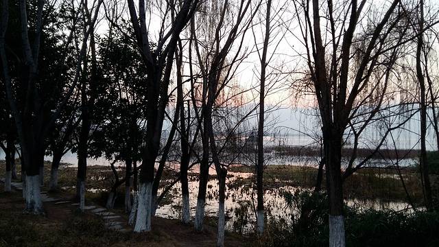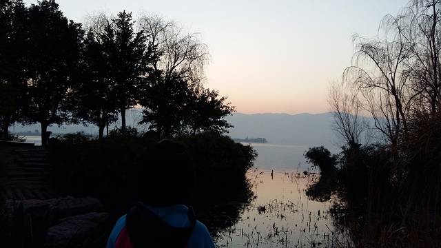 我们大概骑行了7公里到达了小渔村,已经是19点左右,终于可以站在邛海边上了。面对着夕阳映照下的邛海,看着远处的野鸭在水面上自由的游着,白鹭从水面上掠过,置身在大自然的感觉真好。这时候,小渔村比较静,静的仿佛可以听到微风拂过湖面,泛起涟漪的声音。