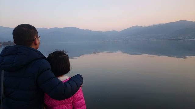 吃完晚饭,像平常的每天一样,带着孩子去散步,这2个女儿跟我很亲 ,晚安了,西昌邛海,明天见!