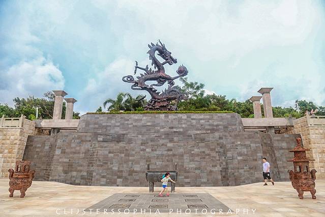 龙行天下大型铜雕,重达5000公斤。龙雕雄踞山顶,守望南海。