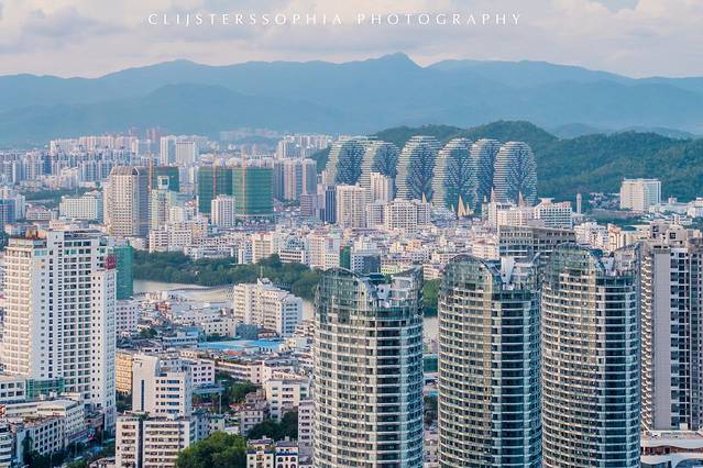 从酒店阳台眺望,向左一点能看到新开业不久的六星酒店——凤凰岛。