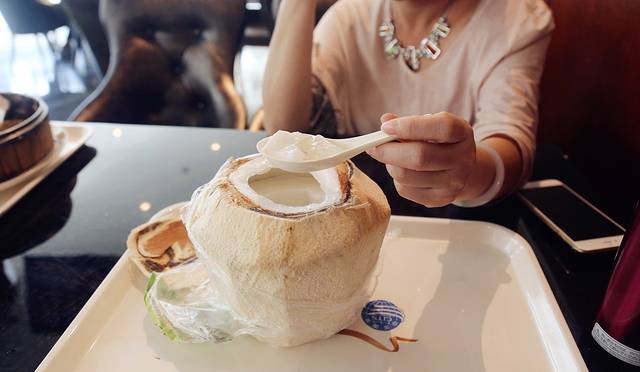三楼还是四楼的美食广场,点了个椰子冻,真是一吃倾心啊!!后悔早几天没吃到,利用椰汁制作的甜品类似于果冻,吃起来很q弹又有很浓的椰子香味。