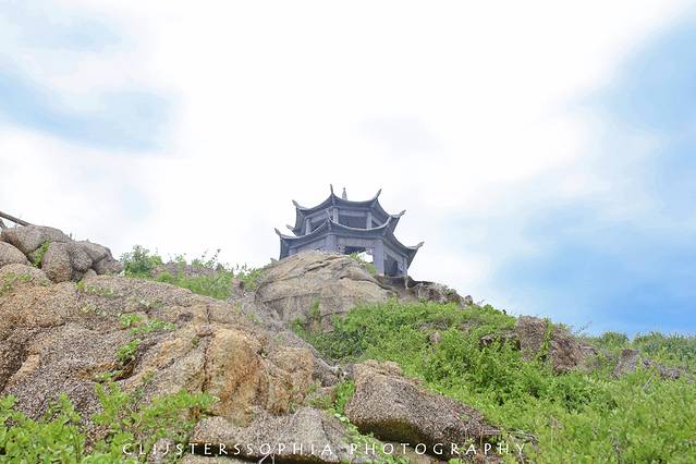 停靠的第一个景点,虽说是蜈支洲岛的制高点,爬起来却一点也不费劲,登上山顶的亭子,可俯瞰南海美景