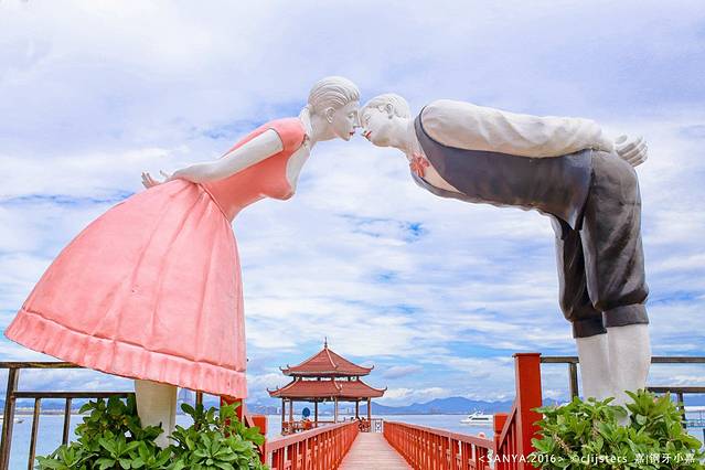 登岛之后往右手边走,很快就能看到两个硕大的亲吻雕塑,雕塑连着的就是情人桥。