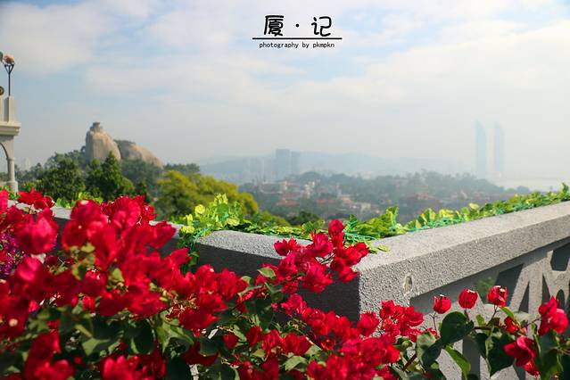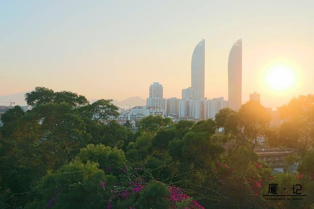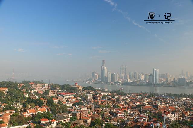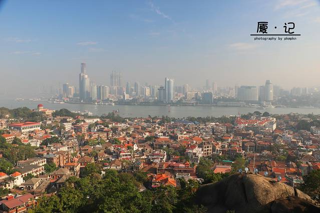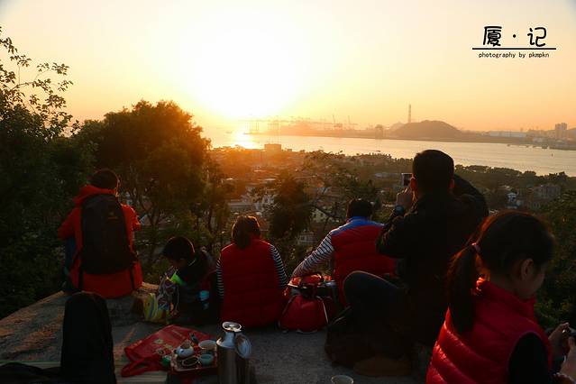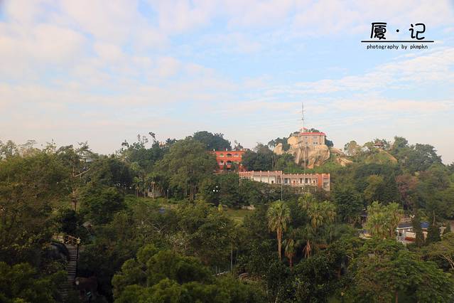 本打算先去菽庄花园走一走,没想到到了门口,被告知去的太早还没开门,不过看见了远处日光岩上看日出的人们