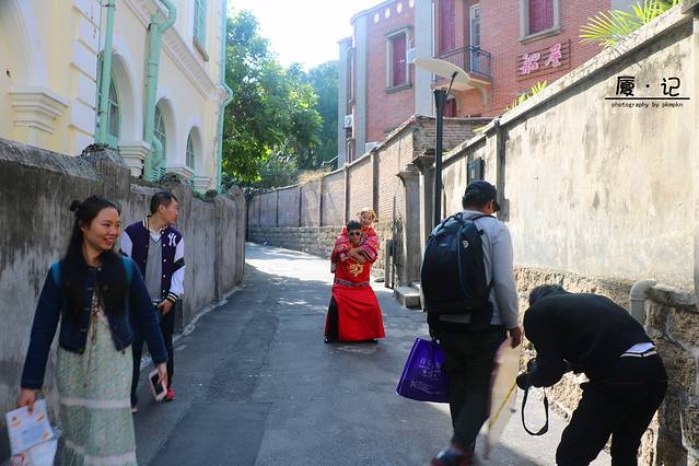 从皓月园出来,不再沿着海边走,而是穿梭在鼓浪屿的各种小巷当中,朝着菽庄花园的方向往回走。这些小道两边都是历史建筑,很有文艺气质。
