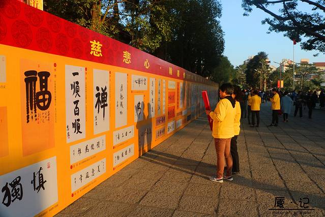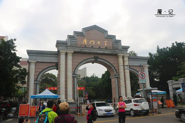 沉浸在美景中,感觉不一会就到了厦大南门,不过这里已经排起了长长的队伍。看着有些人的衣着,忽然想起明天是厦门马拉松的日子。
