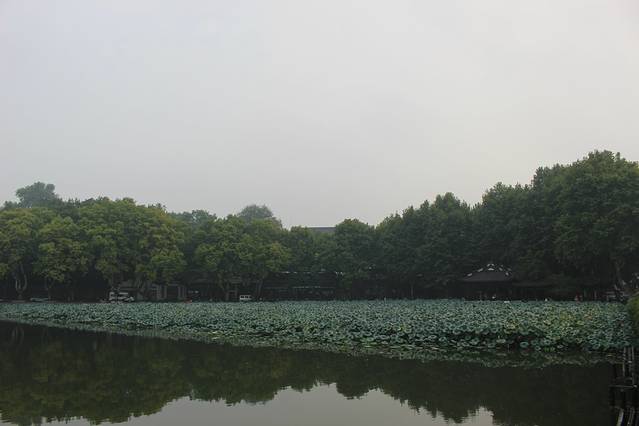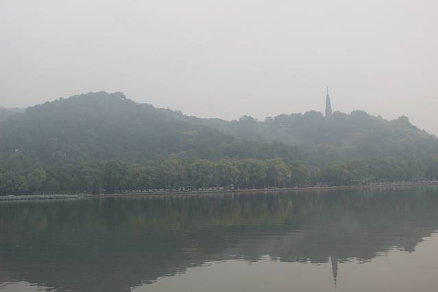 早上起来,离吃饭时间还富裕,就和同事一起去西湖边走走,天气稍微有点雾气。