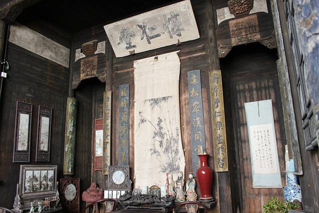 整个村落四面环山,村中街巷沿溪而设,均用青石铺地;古建筑为木结构、砖墙维护,木雕、石雕、砖雕丰富多采;