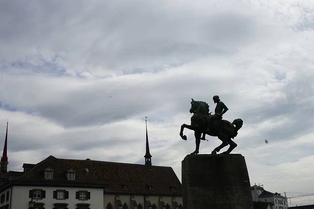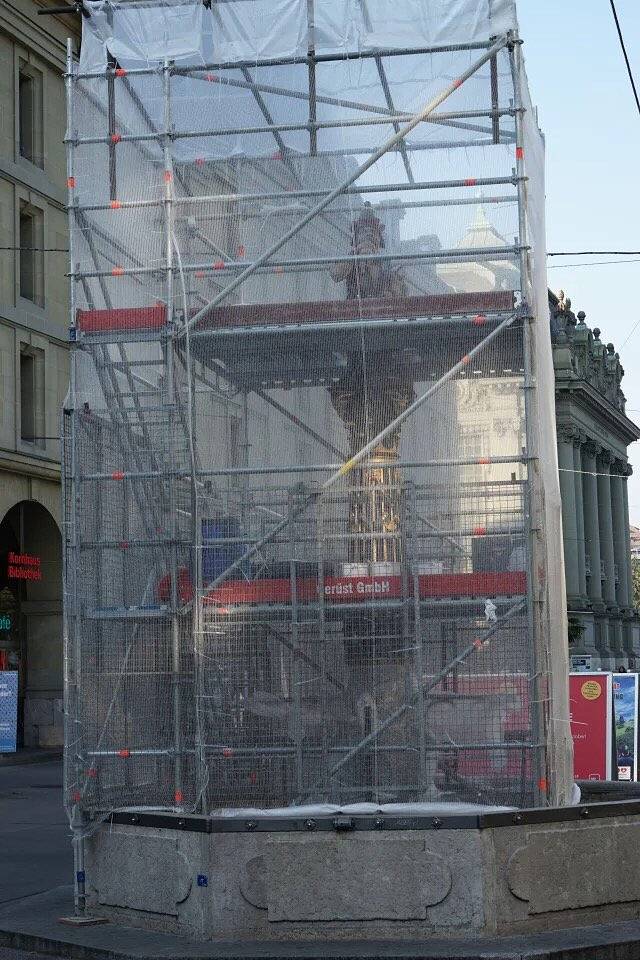 这个喷泉上雕塑的是传说中著名的神箭手黎夫里(Ryffli)。黎夫里喷泉矗立在阿尔贝格大街(Aarbergergasse)上。我们去拜访黎夫里喷泉的时候,11大知名喷泉中,唯有黎夫里喷泉还没上色呢--没穿上衣服,原色黎夫里喷泉,俗称“裸奔的黎夫里”。