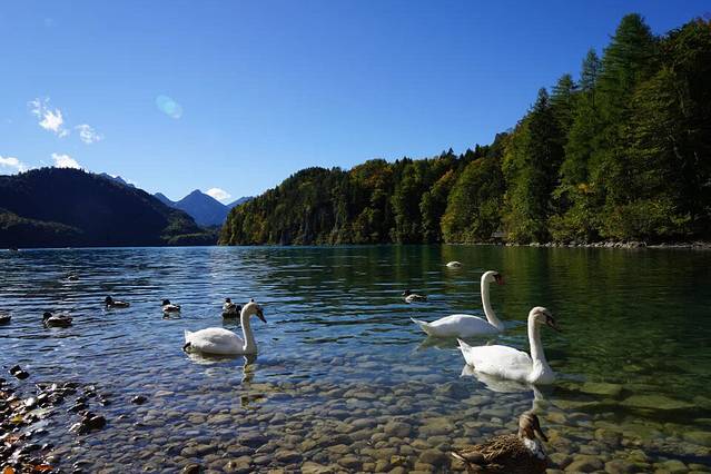 瑞士高昂的物价是早有耳闻的了,未免一不小心途中破产,原本行程计划是一半瑞士一半德国,顺便去慕尼黑安联球场看场球赛,酒店也早早地预订好了,但由于德国开发接收难民政策,9月份的时候仅慕尼黑就已经涌入了十万难民,旅途在外安全至上,何况还带着个小娃儿,所以临出发两星期前就把行程大改,绝大部分的德国的酒店取消了,只保留了新天鹅堡的行程。新天鹅堡在德瑞边界的Füssen,从Stein am Rhein开车过去约两个来小时。