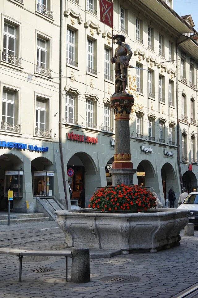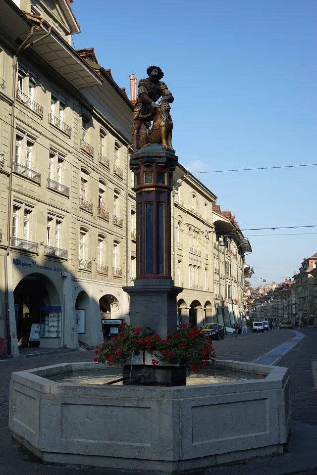 9.文纳喷泉(Vennerbrunnen):又叫旗手喷泉,是一位身穿戎装的伯尔尼旗手。文纳喷泉建立在议会大厦广场(Rathausplatz)上。
