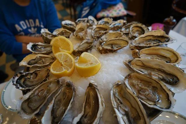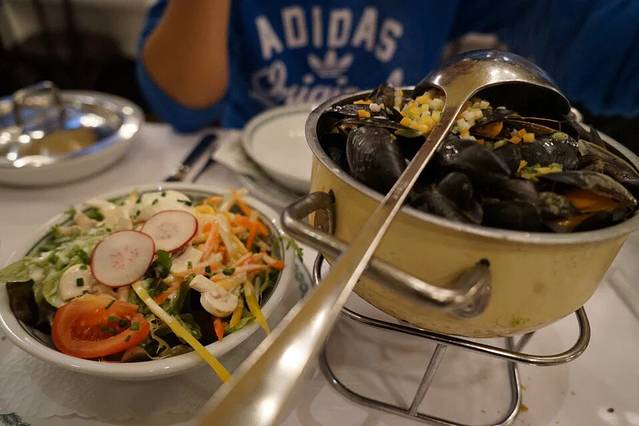 霍夫班大街上一家很出名的法国餐厅,环境高雅,味道上乘,以海鲜为主,点的青口和炖牛小排都很美味~ 花费约CHF 100. 在用餐过程中见到别人点了一大排生蚝遂之异常心动,无奈分量已够再点怕会浪费,因此,决定了明天再来专门吃一餐生蚝!!~