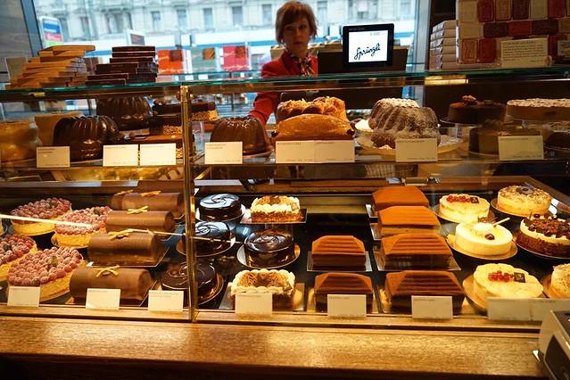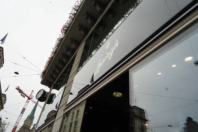 瑞士原本就是巧克力王国,而Sprungli还被称为瑞士最好吃的巧克力,我们当然趋之若鹜咯~ 新鲜的松露巧克力保质期只有一天我们买了几粒尝鲜,因为最吸引我们的还是那个松露巧克力蛋糕,真的真的超浓郁美味~~ 可是……因为巧克力含量太多,我们三个都没办法消灭它,只吃得下一半而已…… 啊~~~~~~~ 好浪费!!!
