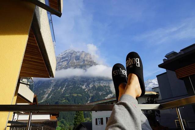 酒店坐落在艾格峰山脚下,但是我们的房间阳台有遮挡景观并不是特别好,如果订更高级点的房间往高楼层住的话,景观应该是更加心旷神怡的(当然价格也是不一样了哈)。服务员很热心,所有的问题都会很耐心地一一解答,minibar 免费,这个好赞!! 酒店的位置离火车站和first缆车站都很近(其实整个小镇也就那么点大哪都近),镇上有超市还有卖各种登山设备的店子非常方便。
