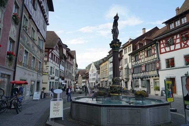 施泰因是瑞士最美的小镇之一,主街的壁画繁复精美,瞬间穿越到中世纪的欧洲👸 小镇宁静秀美,游客有些多但并不喧闹, 在莱茵河畔静静地发发呆也是很好的~
