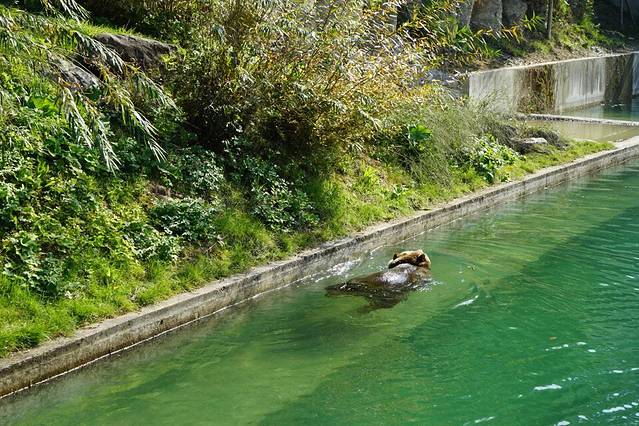 Bern也叫熊城,熊也是伯尔尼州的标志,熊城怎么会没有熊苑呢?! 熊苑其实是一个公园,游客可以免费进入,沿着河岸的小路散步,并欣赏无忧无虑生活着的熊。 熊苑可不是动物园哦,里面有6000平米大的树林,熊们可是过得很自在哒!当然我们看不到公园的全部哈…… 我很喜欢熊崽子们圆滚滚的屁股……