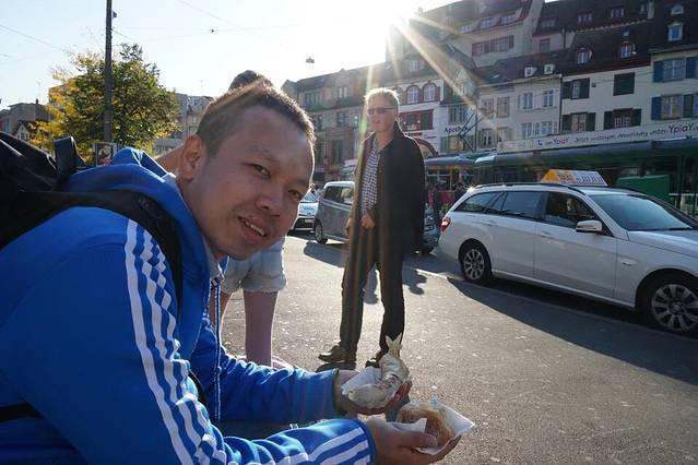 在瑞士浪荡了快半个月第一次遇上刮风下雨天,兴高采烈地出门招风雨去了~~ 原本,我们想去吃麦当劳的(因为我想试试看跟国内有啥不同……),可是没找到就只能换成了星巴克(因为我想试试看跟国内有啥不同……)试了之后觉得啥都不一样,味道都变了,可能跟水质和奶源有关系吧~