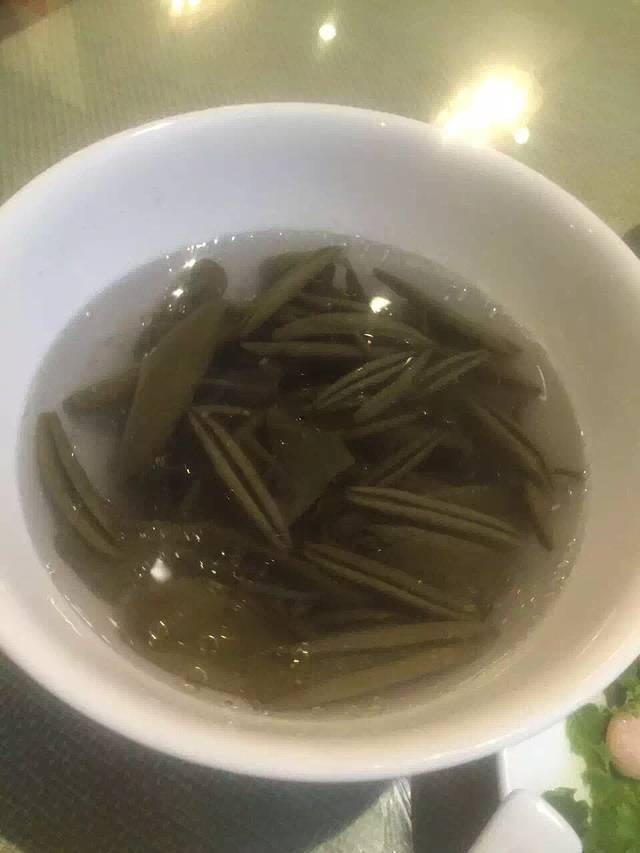 这个像茶叶一样的东西是莼菜汤,口感滑溜溜的,小姐妹很喜欢