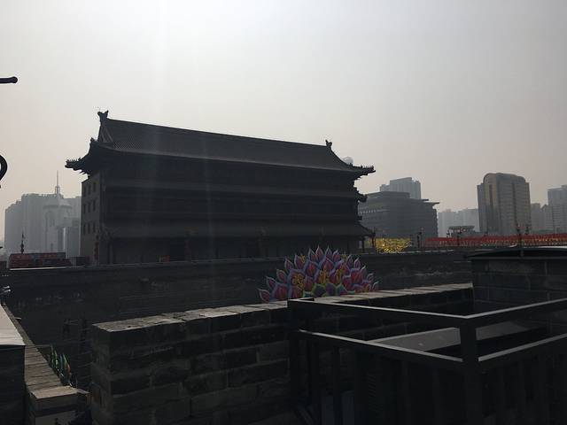 顺便一提,西安是东七区,所以早上亮的比较迟,我们8点起床,分开行动,我去了钟鼓楼、回民街、西安城墙和大雁塔,其实我这种人文气息不够的还不能够体会西安的厚重文化,不过看到完整的城墙还是非常震撼,从南门上去,租了一辆自行车,一路颠簸着绕着城墙骑了一圈,向内看西安老城的历史,向外看西安新区的发展,在城墙上想象当年的战火,一路下来,有高楼大厦也有低矮的房子,有沧桑的历史感也有当今的繁华,颇为矛盾又不矛盾,挺让人感慨。ps:若为吃货,一定要去回民街(类似于厦门的中山街和曾厝垵),强烈推荐肉夹馍。