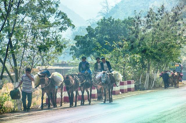 红河谷偶遇一队运货的马帮,匆匆而过,在车上隔着玻璃窗抓拍了一张。