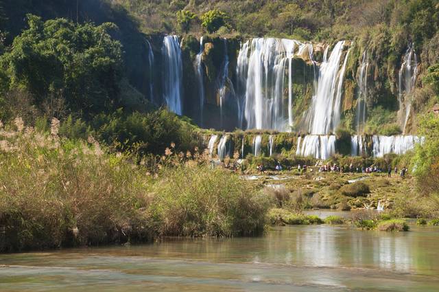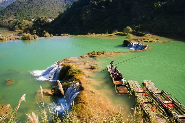 提起九龙瀑布,知道的人不是特别多,近年随着罗平渐渐走入人们的视野,九龙瀑布才渐渐为世人所知。原来它还是《中国国家地理》评选出来的中国最美六大瀑布之一。但95元的门票确实是价格不菲,还不包含缆车的费用。进入九龙瀑布景区,墨绿的九龙河给人的印象最深。
