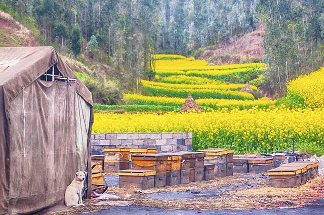 养蜂人的家,很简陋。全部家当只是蜂箱和这简单的帐篷,主人进了帐篷里休息,一条土狗在外面守护着。