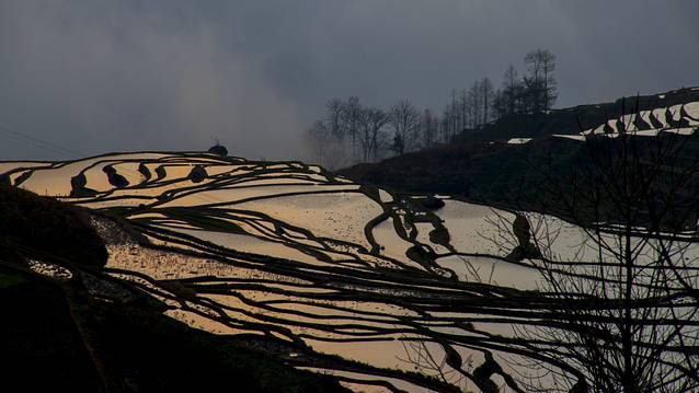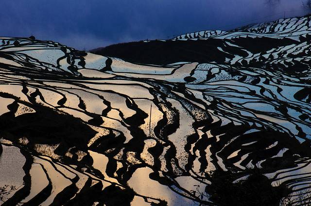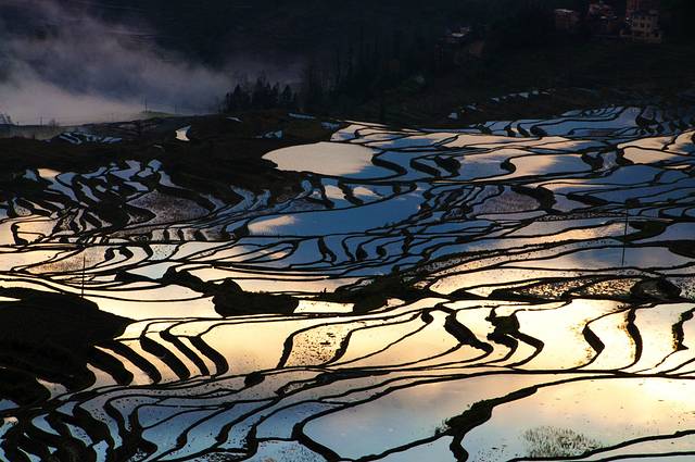 数年前,偶尔看到纪录片或者影展中的元阳梯田照片,总是惊叹其线条之美,光影之塔震撼。当时作为长期奋战在加班第一线的小公司阿头,甚至都不敢想自己能亲自去这交通不便却美如仙境的地方拍摄。而现在元阳梯田几近沦为被摄影大家鄙视的俗气之地。甚至国展将拍摄元阳等摄影者的圣地的雷同照片,在评选中,统统扔进垃圾箱。