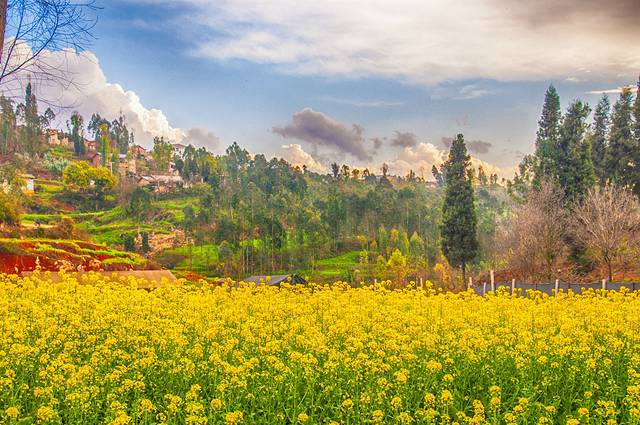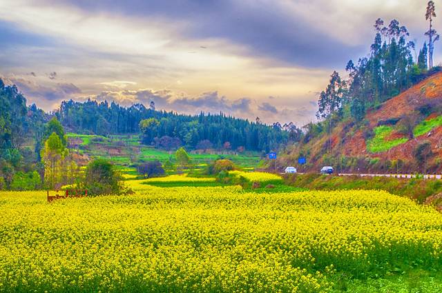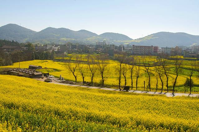 路边的大片油菜花田更是拍照的好地方。