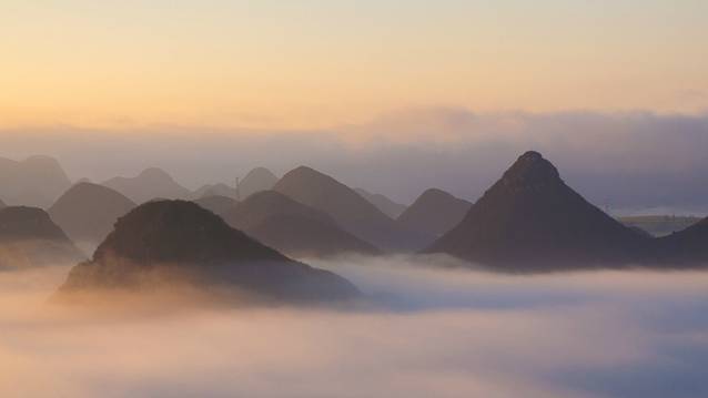 去年在罗平,看的是金鸡峰丛的日落,回来后,看到网上拍得最美的是金鸡峰丛是日出,薄雾映衬下的金鸡峰丛显得不那么真实。为了拍这美丽的日出,清晨六点就从独自酒店出发,开车到达金鸡岭的停车场,还没下车已经有当地村民说要给带路和背包,收费30元。看来已经是过了最旺的季节了,春节假期结束,整个停车场都不见人。