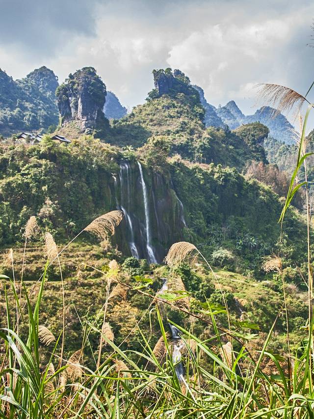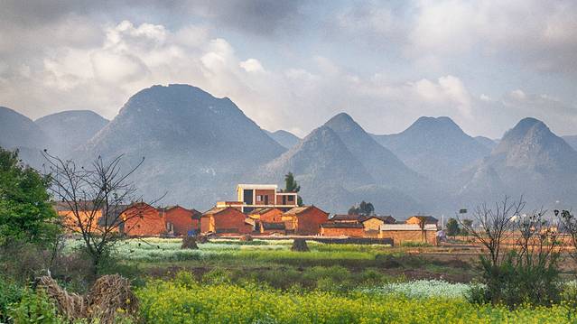散落在峰林间的村落,统一的灰瓦白墙,错落有致地分布着。