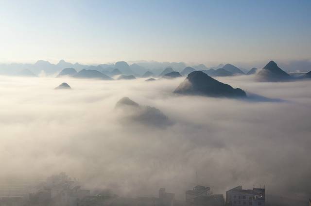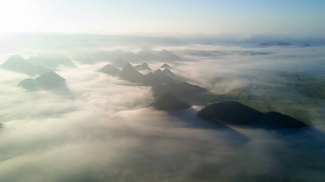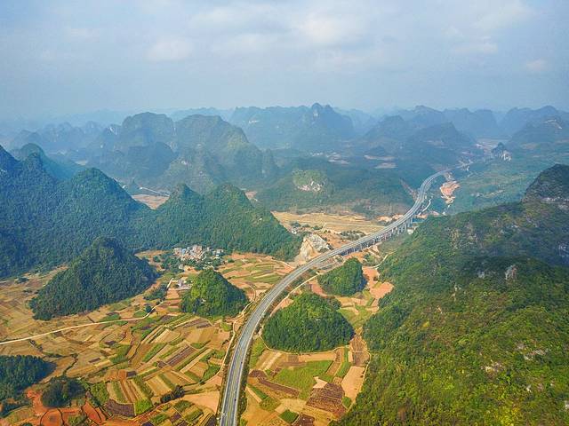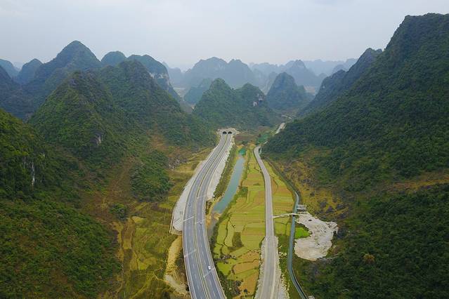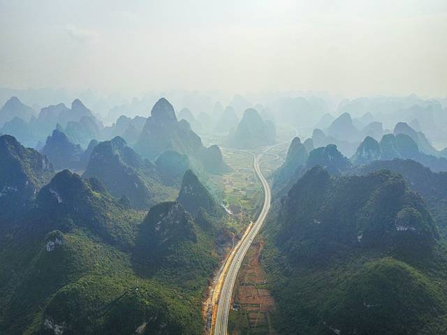 一大早伴着浓雾从广东出发,直到十点多钟后,天气才好转。车子过了崇左之后就是连绵的喀斯特峰林,在大新服务区用无人机航拍了这条被称为高速仙境第一路的合那高速。