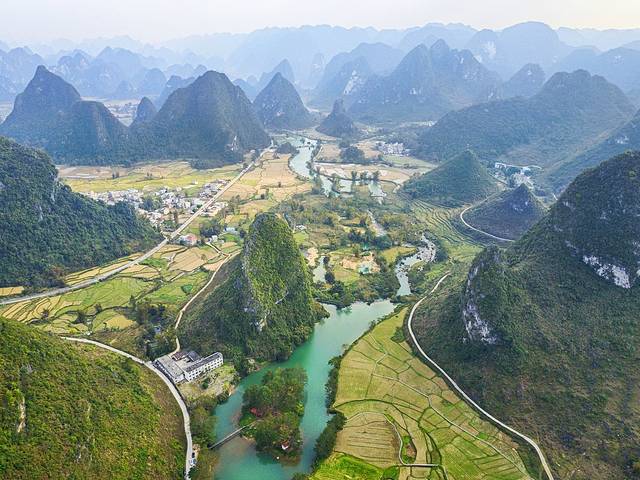 石林没什么特色,倒是航拍周边的峰林田园十分好看。