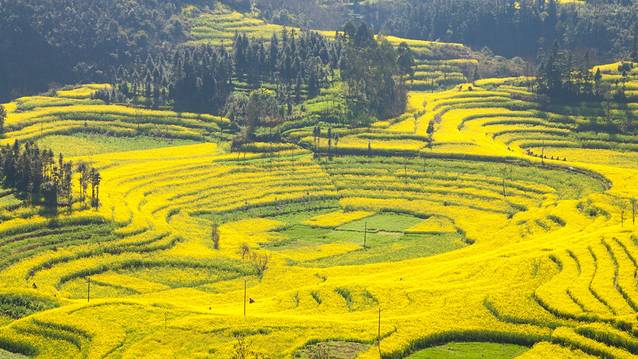 螺丝田在罗平去曲靖的一条老路上,离开县城去螺丝田的路上,一路都是金灿灿的油菜花。车子在其中行驶,就像走在黄金大道一般。
