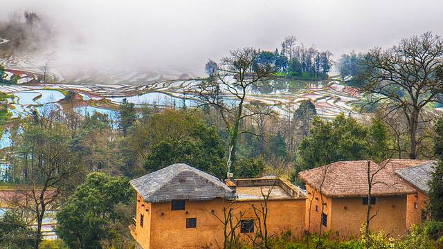 多依树最大的看点是它的云雾,云雾就像一层神秘的面纱,若隐若现的梯田显得更加迷人。