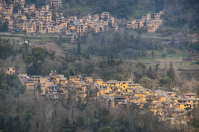 这就是哈尼族特色的蘑菇房,棕色的屋顶和土黄色的墙身,在远处看来,像一颗颗分布在山坡的小蘑菇。