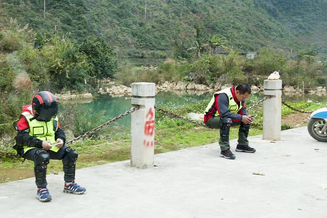一对摩旅父子正在旁边休息,小孩不到十岁的样子。我们攀谈起来,原来他们从柳州一路骑摩托车过来,这两天看着天气不太好,正打算返程了。还告诉我后面有座乌龟山,真的很像乌龟。我之前也在网上有看过介绍,可惜最终还是找不到。